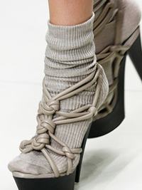 A zokni-szandál a mindent felvállaló nyolcvanas évek óta két éve már egyszer betört a nemzetközi divatvilágba, amikor a nyári tűsarkú cipőkhöz vékony bokazoknit javasoltak, mint megfelelő viselet, de ez a mostani még annál is sokkal durvább.