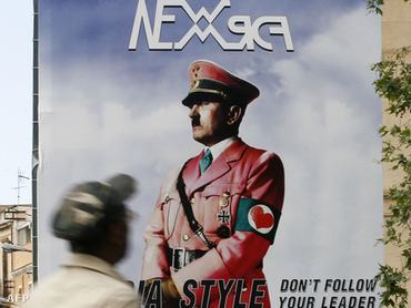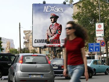 Az 5 és fél méter magas plakáton a náci vezér karján horogkereszt helyett szíves szalag feszül: a bizarr plakát Palermo falain és buszmegállóiban tűnt fel. A Führer a pink uniformisban meglepő módon egy ruhamárkát reklámoz. A szlogen: „Változtasd meg a stílusod, ne kövesd a vezetőd!”.