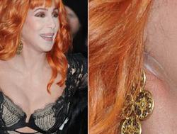 A legszerencsésebb fotós pont azt a pillanatot kapta el, amikor Cher a vörös (helyett magenta színű) szőnyegen kicsit hátrasimította műhaját, majd oldalra fordította a fejét. Ekkor kilátszott a füle alá ragasztott, elvileg nyilván láthatatlannak szánt ragasztócsík. Ezt a kis trükköt azért szokás alkalmazni, hogy a nyak, illetve áll megereszkedett bőre kétfelé széthúzódjon. Így nemcsak a ráncok látszanak kevésbé, hanem ha esetleg van egy kis toka, az is eltűnik.