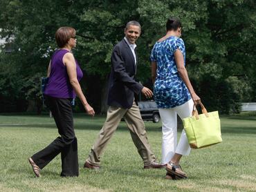 Michelle Obamát 30 dolláros (5500 Ft) Gap szerelésben fotózták le Camp Davidben, a mindenkori amerikai elnök hivatalos nyaralójában. Az impresszionista névre keresztelt nyomott mintás szövetruhát a First Lady tunikaként viselete, az idén is divatos bokavillantó fehér nadrággal és lapos szandállal. A nadrág jelenleg le van árazva Amerika-szerte, így csak 29,99 dollárba kerül.