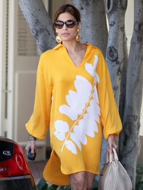 Ezt a szettet cserélte le vásárlás közben a sárga, levél mintás, bő szabású, hosszú ujjú tunikára/miniruhára, melyhez fehér háncstalpú szandált és fonott táskát is vett, így indult üzleti tárgyalásra. Önnek Mendes melyik szettje jön be jobban? Szavazzon, vagy mondja el véleményét kommentben! A képekért kattintson a galériára!