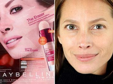 A másik problémás hirdetésnek Christy Turlington és a Maybelline The Eraser nevű alapozója a főszereplője. A L’Oréal azt állítja, hogy csupán apró igazításokat végeztek, kicsit sötétítettek a szemöldökön, puhították az ajkakat, a sötétebb árnyékokon finomítottak, bizonyos helyeken a sminkkel is babráltak és hasonlók. Az öregedés elleni alapozó hatását egyébként úgy próbálták meg érzékeltetni, hogy a modell arcának csak egy részét fedi alapozó. Ugyan a reklámfotón szereplő apróbetűs részben a cég felhívta mindenki figyelmét arra, hogy ez csak illusztráció, de a balhé kirobbanása után azt nyilatkozták, hogy a kép a változtatások ellenére pontosan, valósághűen mutatja be, hogy milyen csodás hatása is van az ő remek terméküknek.