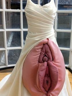 Mivel a vagina szó túl orvosi, a vulva túl mű, a punci pedig túl ártatlannak hangzik, így szó szerint kimondjuk: pinás menyasszonyi ruhára bukkantunk az interneten. Az egyébként fehér, fűző szerű felsővel és egyszerű esésű alsórésszel készült ruha egész szoknyarészére egy hatalmas női nemiszervet kreált a készítő. A pinát anatómiai pontossággal készítette el a Glasgow-i művészeti iskola Moore művésznevű hallgatója: a csikló makkja, fitymája, a kisajkak, és a hüvely néznek farkasszemet a násznéppel a ruhán. Azt azért ki kell emelni, hogy az anatómiai részletek figyelembevétele mellett a színekre is összpontosított a készítő, a pina belső részei sötétebb árnyalatú rózsaszínű anyagból készültek, mint a nagyajkak. Tudjuk az illemszabályokat, feketét, fehéret, vöröset nem illik esküvőn viselni. Arra azonban nincs szabály, hogy nem lehet pina a menyaszonyi ruhán.