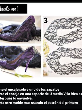 Először a csipkét ráterítette a cipőkre és ez alapján kivágott egy pontyszelet formájú darabot.