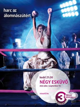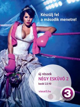 A Viasat újabb évadot nyom a Négy esküvő című műsorából (reality, amelyben emberek összeházasodnak, és egymással küzdenek egy zsír nászútért), amire utcaszerte plakátokkal hívják fel a figyelmet. A sorozat jellegéből fakadóan a promóanyagra egy menyasszony került, bokszkesztyűben, és most nézzék meg a melleit. Egyiket a másik után.