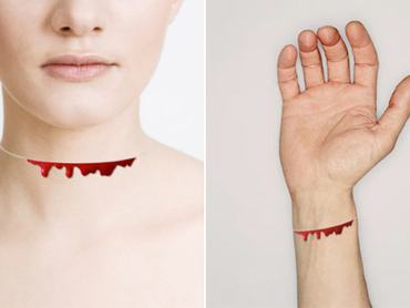 Lucas Mongiello francia dizájner nyakék és karkötő ötlete bizarr és morbid, de épp ezért szerethető, vagy legalábbis érdekes. A sima, vékony pengével végzett metszést imitáló nyaklánc Dexter rajongóknak kötelező! Valószínű, hogy ezeket látva többen is rosszul lennének a környezetünkben és a vasárnapi családi ebédhez sem ajánljuk őket, de Halloween partira tuti választás. Vagy Ön szerint semmi baj nincs azzal, ha halálos sebekket hordunk magunkon? Hétköznapi viseletként is menő egy (egyébként keresztben, tehát nem túl profin megoldott) érfelvágás?