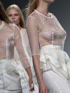 Victor von Schwarz szeptember 4-én, a divathét utolsó napján mutatta be „Yukion'na” ihlette, jellemzően fehérben megálmodott kollekcióját. A spanyolokhoz is megérkezett tehát a divatszakmában egyre megkerülhetetlenebb japán őrület, ugyanis yuki-onna a japán mondák népszerű hőse. A havas éjszakákon megjelenő szellem vagy hóasszony legtöbbször utazó férfiak előtt, a hó felett lebegve jelenik meg fiatal nő formájában. A tervező komolyan vette a japán legendát, ruhái egytől egyig fehér és áttetsző anyagokból készültek, illetve a kifutó is ehhez igazítva meseszerűen ragyogó fényárban úszott.Szeretjük a fehéret, mint színt, az egyhangú színhasználat ellenére a show cseppet sem volt unalmas, Victor von Schwarz ruhái hordhatóak, kalapjait pedig egytől-egyig elfogadnánk.