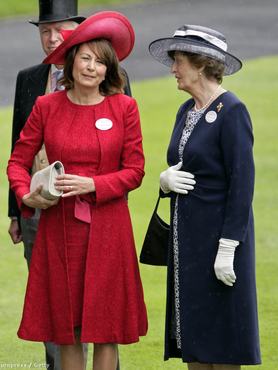 Kate és Pippa nyomdokain haladva az 57 éves Carol Middleton kollekciójában olyan népszerű darabok kaptak helyet, mint a hercegnén sokat látott bézs Burberry kabát, melyet az Asdánál 650 font, 232 ezer forint helyett mindössze 22 fontért, 7800 forintért lehet beszerezni. De a 2010-es ascoti derbin viselt királykék kabát-ruha is bekerült a 2012-es őszi-téli kollekcióba, melyet 35 fontra, 12 500 forintra árazott be az áruház. Mrs Middleton fekete, redőzött koktélruhája, amit a királyi esküvő afterpartyján viselt, egy visszafogottabb, övvel kiegészült változatban kapható szintén elérhető áron, 14 fontért, 5000 forintért – írja a dailymail.co.uk.