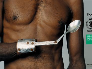2003-ban a Benetton a világon mindenütt aggasztó méreteket öltő éhezést jelölte meg kampánya témájául. Az Ételt az életért kampányban többek között egy megcsonkított férfi szerepelt, akinek fém protézise egy kanálban végződött. Továbbá bemutattak olyan egyéni történeteket, amikben férfiak, nők és gyerekek mesélték el, hogy élelemre van szükségük.