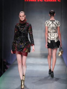 A tervezőnő, akit külföldön is egyre jobban elismernek a Fashion Days-en vonultatta fel őszi-téli kollekciója legérdekesebb darabjait. A színes bundák tényleg a külföldi divathetek hangulatát idézték, de nekünk a kövekkel kirakott, merev búraruha tetszett a legjobban. Igaz, hogy nyomokban emlékeztet Alexander McQueen 2010-es tavaszi nyári kollekciójának pár darabjára, illetve kicsit Mary Katrantzou búraszoknyájára is, de attól még gyönyörű ruha. Másik galériánkban található műve egy egyszerűbb szett: a lila maxiszoknya és fekete garbó párosa nem nagy különlegesség, de a csillogó nyaklánc az egészet feldobja.