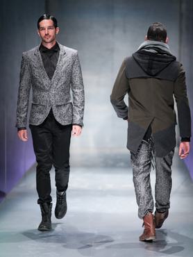 A tervező eléggé egyedül van a férfiruhák magyar tervezői piacán, ami előny: a Fashion Days-en egyedüliként mutatott be férfikollekciót, igaz, inkább a hordhatóságra, eladhatóságra koncentrált, mint az extrém megoldásokra. Nekünk a képen háttal látható kabát megoldásai tetszettek nagyon: mostanság amúgy is nagy divat az anyagok, színek keverése egy ruhadarabon belül, Benus ízlésesen oldotta meg, ráadásul úgy, hogy kabátját simán el lehet képzelni átlagférfiakon is. A másik Benus képen egy egyszerű fekete öltöny látható, végülis olyan is kell minden pasinak.