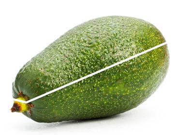 Csak vágja körbe a gyümölcsöt a középen található nagy kerek mag körül, a fotón fehér vonallal jelöltük, hogyan vágjon. Az érett avokádó húsa puha, a vágás után a gyümölcs könnyen kettéválasztható, ez az állapot látszik a cikk nyitó fotóján. Ha ezzel megvan, vegye ki a magot és kanalazza ki a gyümölcs húsát (ha krémet készít), vagy húzza le a héjat és szeletelje, kockázza, ha salátába teszi vagy magában enné.
