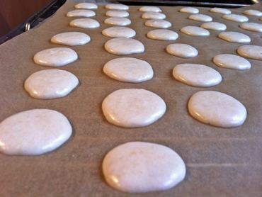 Ahhoz, hogy a macaron macaron legyen, ne pedig habcsók, az kell, hogy a kis sütiknek sülés közben talpa nőjön. Ez, a tapasztalatom szerint pedig attól következik be, ha a habzsákból kinyomott masszát elegendő ideig szárítjuk ahhoz, hogy a teteje "megbőrösödjön". Ahogy a felső réteg várakozás közben megkeményedik, a forró sütőben az egész macaron nagyjából egyszerre indul meg fölfelé. Ha a bevonat még nem elég kemény, macaron helyett valami puszedli-habcsókféle kekszet kapunk, repedezett, csúcsos tetővel. Finom amúgy az is, csak nem macaron.