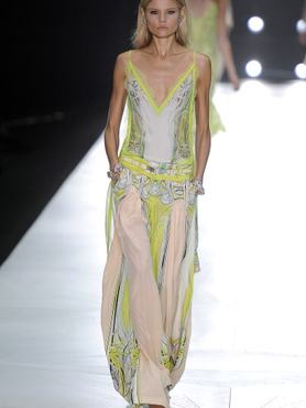 A 2013-as tavaszi/nyári kollekciója természetesen még mindig szexis, azonban most inkább a romantikusabb vonal felé tendál, és kedvenceit, a vad állatmintákat ezennel hanyagolta. A szőke hajú modelljeit laza, világos, lágy esésű nadrágokba, valamint könnyű, virágmintás tunikákba öltöztette, míg a barnákat sötét, különleges szabású ruhakölteményekbe.