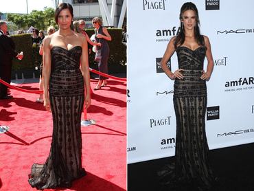 Zuhair Murad ruhái mindig népszerűek voltak a vörös szőnyegen, ezúttal Padma Lakshmi és Alessandra Ambrosio viselte a tervező ugyanazon ruháját. A kreációt az indiai színésznő még szeptemberben vette fel a Creative Arts Emmy díjátadóra, míg a Victoria's Secret angyala az októberi amfAR Gálán jelent meg a fekete, csipkés estélyiben. Egyik híresség sem viselt a virágos hímzéssel díszített, váll nélküli estélyihez táskát, a cipőjük nem látszik, tehát tényleg csak arra lehet szavazni, hogy Lakshmi vagy Ambrosio hibátlan alakján mutat-e jobban Murad kreációja?