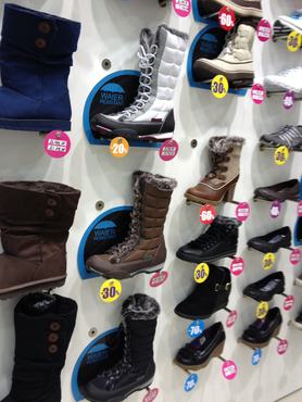 Mivel a leárazásra koncentráltunk, a legolcsóbb és legjobban leárazott termékek között keresgéltünk, így találtunk 3990 forintos, extrém bokacsizmát, 4990 forintos műbőr körömcipőt, amiből nem volt már 38-as méret, 30 helyett 20 ezer forintos, hasított bőr, térd fölé érő rojtos csizmát. Sok a vadhajtás (főleg az SMH márkánál), de lehet jó őrültségeket kifogni. Az olcsóbb árkategóriás termékek között főleg kicsit lazán összegányolt műbőr cipők vannak, de aki hajlandó 60 ezret adni egy csizmáért, az kap Hilfiger csizmát is a Humanicnál.