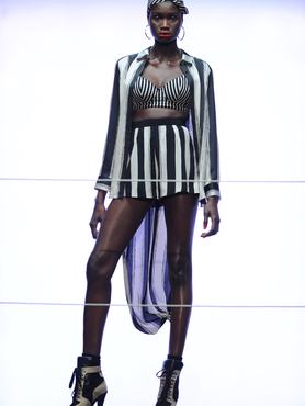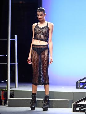 Az énekesnő stílusát erősen tükröző darabok java átlátszó, fekete, piros, sárga és virágmintás anyagból készült. A kilencvenes éveket idéző kollekció felsőrészei inkább melltartók voltak, de nem volt hiány a New York-i divathéten is látott rövidnadrágból és magas sarkú cipőből sem.