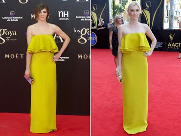 Manuela Velasco spanyol tévés műsorvezetőt és színésznőt, a REC című spanyol horrorfilmből ismerheti az, aki nem spanyol sorozatfüggő. Velasco február 17-én, a 2013-as Goya Cinema Awards egyik műsorvezetőjeként viselte Madridban a mellrésznél fodros, kicsit fürdőlepedőszerű Gucci estélyit. A sárga ruha a divatház 2013-as tavaszi-nyári kollekciójából való, és egyelőre elég nagy sikere van a celebnők körében, bizonyos Bipasha Basu Mumbaiban, Kate Beckinsale az InStyle Golden Globe partiján viselte már idén.