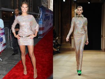 Heidi Klum egyik népszerű TV-műsora, a Project Runway (itthon Kifutó néven láthattuk) aktuális szezonja a fináléhoz közeledik, ő pedig pont egy hete ebben a Talbot Runhof ruhakölteményben jelent meg New York városában. Az eredetinek egy jóval rövidebb változatát viselte és míg a kifutón ékszerek nélkül láthattuk a ruhát, addig ő jócskán feldíszítette magát velük.
