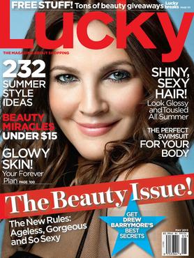Hasonló munkálatok előzték meg Drew Barrymore legújabb, Lucky Magazinnak készített címlapját is, melyen a kissé aszimmetrikus mosolyú, csalfa tekintettel pózoló Barrymore-t ekként mutatta be a lap: „Ilyen az amerikai szépség, kortalan, gyönyörű és annyira szexi!” Bár a kedves szavak ellen nem volt kifogásunk, azért hitetlenkedve fogadtuk, hogy a nemrég szült 38 éves színésznő még mindig úgy néz ki a képen, mintha a húszas éveiben járna.