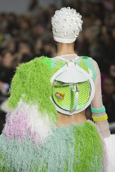Cassandra Verity Green nem kapott díjat, mégis készült róla külön cikk a Daily Mailben, mert kiverte a biztosítékot az állatvédőknél, hogy saját élő aranyhalát kiegészítőként küldte kifutóra. A műanyag hátizsákban úszkáló hal pedig nem tűnik boldogtalannak, a design pedig minket kicsit a Chanel borzalmasan túlárazott tengerpartos kollekciójára emlékeztet – de biztos csak a hal miatt. A brit állatvédő szervezet, az RSPCA szerint az még rendben van, hogy a végzősök feszegetik a divat határait, de semmiképp sem jó azt sugallni, hogy háziállataink eldobható kiegészítők lennének.