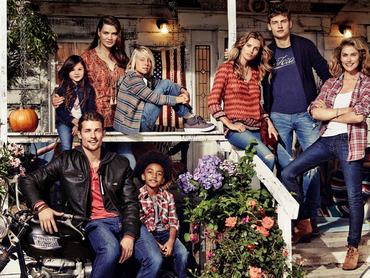 Hutton egyszerű szerelésben, térdnél szaggatott, feszülős farmerben és motoros dzsekiben állt modellt a Lucky Brand legújabb, 'Farmerdemokrácia' elnevezésű kampánysorozatához. A két fotó közül az egyiken egyedül, a másikon még hét társával együtt pózol, így a kampányképek egy farmermániás család átlagos délutánját tükrözik.