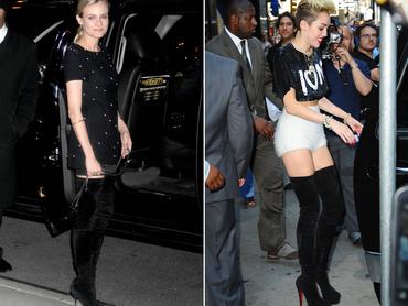 Ez most nem szokásos heti kinek állt jobban rovatunk, de nem tudunk szó nélkül elmenni Miley Cyrus combcsizmája mellett. Igazából amellett még valahogy elmennénk, hogy egy popsztár ilyesmit vesz fel pelenkaszerű forrónadrágja mellé, de a tény, hogy ezt a ribancos, combközépig érő Louboutin magassarkút már Diane Krugeren is láttuk, apropót ad annak, hogy megkérdezzük önöket, kinek áll jobban ez a hangsúlyos lábbeli?