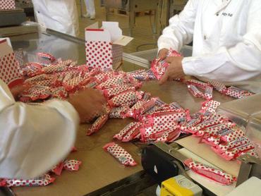 4. A csomagolás eleinte kézzel készült, és a szaloncukorhoz hasonlóan megcsavarták a papírt, ez a csavaros forma aztán eltűnt, és a folyamatos fejlesztéseknek köszönhetően a '80-as években bevezették a fémfóliát, az ezredfordulón pedig rákerült a nyitócsík a csomagolásra.