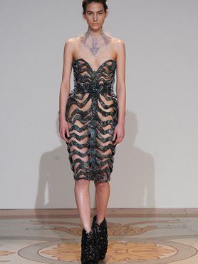 Iris van Herpen július elején, a párizsi haute couture divathéten mutatta be 3D nyomtatóval készült estélyijét, melyet egy belga céggel, a Materialise-zel közösen hozott létre. „Először dolgoztunk Iris van Herpennel, és a közös munka gyümölcse egy hibrid alkotás lett: egy egyedi, átlátszó, csontszerű szerkezet, amelyet mammut sztereolitográfia segítségével hoztunk létre. A 3D-s nyomtatásnak köszönhetően a mérték után készült ruhákon nincs varrás. Izgalmas Iris van Herpennel dolgozni és megvalósítani komplex, geometrikus terveit. A 3D-s nyomtatási technológia olyasmire képes, amire más ruhagyártási technológiák nem: képes gyorsan, egyetlen darabból álló, komplex formákat létrehozni.” – nyilatkozta Sven Hermans, a Materialise ügyfélkapcsolati vezetője a cégét támogató Európai Bizottság Kutatás és Innováció Főigazgatóságának.