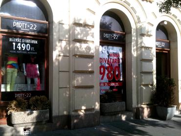 A Party 22 talán az egyik legismertebb olcsó-márkás bolt, ahol egy új kollekciós Zara cipő árából teljesen felújíthatja gardróbját. Fontos leszögezni, hogy ez nem egy turkáló, hanem a legnagyobb Inditex boltok meghibásodott termékeit küldik ide, ami általában leszakadt pántokat vagy gombhiányt jelent, de olyan is előfordult, hogy semmilyen hibát nem fedeztünk fel a ruhán. Két Party 22 üzlet is van a belvárosban, az egyik a Jászai Mari téren, a kétszer nagyobb, nemrégiben megnyílt üzlet pedig a Harminckettesek terén várja a kincsvadászokat. Érdemes elnézni, mert új kollekciós Zara, Bershka vagy Stradivarius ruhákból válogathat az ember: nadrágokat 1490, koktélruhákat 1980, pulcsikat 1500 míg cipőket 1490 forintos áron lehet beszerezni, mi egy 1900 forintos Bershka bőrnadrágra és egy 3 ezer forintos Zara blézerre csaptunk le itt, de rövidnadrágból és cipőkből is nagy a kínálat, csak győzzön válogatni.