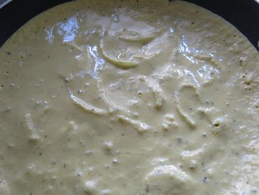 4. Ha minden oké, mehet a serpenyőbe - csurgasd körbe a serpenyőn, ahogy a palacsintával szokás, majd mérsékeld a lángot, és fedővel letakarva süsd át négy perc alatt. Ha nem bízol a tűzhelyedben, három pec után kukkants be a fedő alá. Ha minden jól megy, nem szükséges megfordítanod az omlettet, mert a gőznek köszönhetően tökéletesen megfő felülről, és ropogósra sül alulról. Ha vastagabb az omletted, adj neki még pár percet. Nem nehéz rájönni, mikor van készen - pont úgy néz ki, mint a hagyományos omlett.
