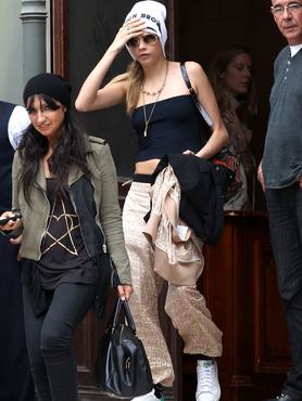 A Kate Mosshoz hasonlított Cara Delevingne számos divatház kifutóján megfordult a 2014-es tavaszi-nyári kollekciókat felvonultató divathéten. A dailymail.co.uk szerkesztőinek a New Yorktól-Párizsig lőtt paparazzi képek nézegetése közben szemet szúrt, hogy a 21 éves modell bár a saját, laza szettjeiben érkezett a bemutatókra, több show végén is a kifutón látott legújabb designer ruhákban távozott a helyszínről.