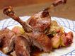 5. Az almát és a krumplit a kacsa köré szórtam, a krumplidarabokat megsóztam. Aláöntöttem a maradék bort, almalevet. Ment rá vissza a fólia, és sült további bő egy órát.
