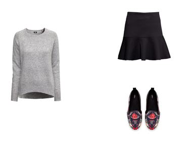 Először is következzen öt szett, amelyeket a Refinery29 „lusta lányoknak” készült anyaga alapján válogattunk össze. Az első összeállítás olyan rohangálós napokra ajánlott, amikor nem kell kiöltözni, de éppen nincs kedvünk nadrágot venni. Ehhez nem kell más, csak egy csinos miniszoknya, egy egyszerű szürke pulóver és kényelmes, de vagány papucscipő.