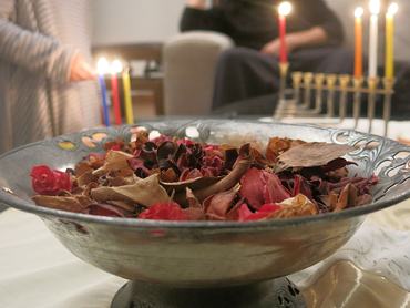 A családi vacsi gyertyagyújtással indul. Az előbbihez egy hanukiára és annyi gyertyára van szükség, ahányadik napjánál tartunk az ünnepnek – plusz egyre a meggyújtásához. Ez remek alkalmat nyújt az óvodásoknak és kisiskolásoknak arra, hogy őrült hanukia-gyártásba kezdjenek a technika órákon és szakkörökön. A család második legfiatalabb tagja, Tamar ebben az évben sókerámiából készített gyertyatartót az oviban, amely a szivárvány minden színében pompázott, és bár teljesen amorf volt, nagyra értékeltük mindannyian. (Kivéve az egyik bácsikáját, aki szerint olyan volt, mintha színes gyurmát evett volna, aztán kihányta volna.)