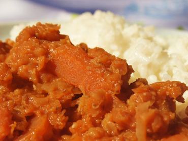 Sima főtt rizzsel ettük, de jól passzol hozzá a lepénykenyér is.