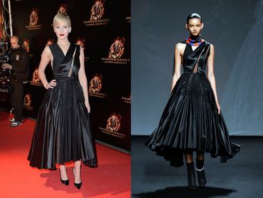 A Jennifer Lawrence és a Dior közötti szerződés fényében nem annyira meglepő, hogy a fiatal színésznő új filmjének, a Futótűznek római, párizsi és Los Angeles-i premierjén is a francia divatház haute couture, azaz magas szabászati ruhakölteményeiben jelent meg. Az olasz fővárosban egy vajszínű, a franciában egy éjfekete darabban jelent meg, az Egyesült Államok nyugati partján pedig egy leginkább ibolyalilára hajazó ruhát öltött magára. Megkerestük az öltözékek pár héttel ezelőtt kifutón látott verzióját is, az ön feladata, hogy eldöntse: a színésznőn mutatnak jobban a kreációk vagy a manökenen.