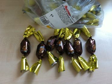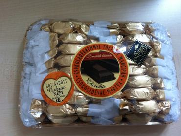Sajnos ez az elképzelés már az első boltban szertefoszlott, ugyanis olyan kevés "csak" csokis ízesítésű cukrot kapni (nem is értjük miért), hogy egy kicsit változtatnunk kellett az eredeti ötleten. Így kapott helyet a kóstolón, rumos-csokis, a rumos-kakós, a marcipános-csokis és sima csokis töltelékű szaloncukor. Egy kakukktojás is volt, a Tesco méregdrága saját márkás: Tesco Finest szilvakrémmel töltött marcipános szaloncukrát is kipróbáltuk.