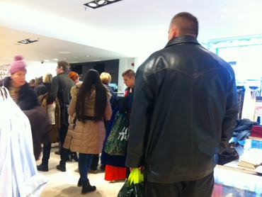 December 27-én reggel 10-kor, nyitáskor még kongott az ürességtől a Vörösmarty téri H&M, ami teljesen érthető, ha azt nézzük, hogy a svéd márka már karácsony előtt elkezdte a leárazást. A Váci utca környékén egyébként viszonylagos nyugalom volt ahhoz képest, amit a WestEndben tapasztaltunk, úgyhogy ha jövőre azt tervezi, ön is részt vesz az ünnepi punnyadás utáni első leárazásos őrületen, akkor a plázák helyett inkább oda induljon.