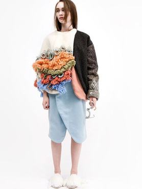 Az London College of Fashion diákja, Stephanie Wong a természetből és Giuseppe Arcimboldo festményeiből merített ihletet megmagyarázhatatlanra sikerült diploma munkájához, amelynek az „Extraordinary Piegon” nevet adta a tervező. Az alternatív anyagokkal dolgozó Wong pulóvere inkább emlékeztet egy kifordult bélrendszerre, mint egy designer darabra, de nézzük el neki, várhatóan pár éven belül a fiatal tervező is belátja, hogy a kevesebb néha több.
