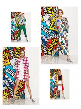 A tavalyi év egyik legtöbbet foglalkoztatott kifutó modellje, Adamik Luca a figyelemfelkeltő kampányairól jól ismert olasz divatház, az 1983-ban alapított Moschino egyik vonalának, a Love Moschino 2014-es tavaszi-nyári lookbookjában látható. A modell egy Roy Lichenstein művészete előtt tisztelgő, pop-art stílusú fal előtt pózol vagány és színes szerelésekben. Úgy tűnik, a következő szezonban menő lesz a pöttyös kabát csíkos cipővel illetve a virágmintás ruha baseballdzsekivel.