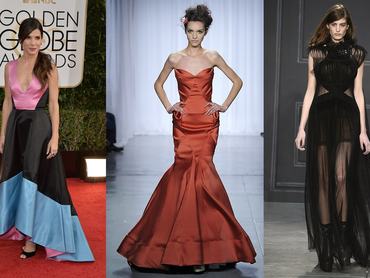 Átnéztük az E! Online, a Metro, a Harper's Bazaar és a Toronto Sun jóslatait, és arra jutottunk, hogy bármelyik, cikkben szereplő ruhával jól járnának a legjobb női főszereplő és legjobb női mellékszereplő díjára jelölt celebnők, csak abban az egyben reménykedünk, hogy kicsit több színt látunk majd a vörös szőnyegen, mint a folytatásban található galériánkban, ahol javarészt sötétkék, fekete, fehér és bordó estélyiket mutatunk.