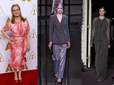Streep nagyon ügyesen váltogatja a kosztümös és a nagyestélyis megjelenést, ha tippelhetünk, azért az Oscarra utóbbit választja. Reméljük valami vidámabbat, mint amit a külföldi sajtó jósol, mert a sötétkék és a fekete is nagyon unalmas már.