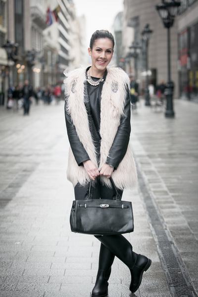 A bőrkabátra vett világos bunda még ilyenkor is jól jön kora reggel, napközben aztán simán el lehet tenni. A bundamellények közt gyakoribbak a sötét színek, pedig egy ilyen világosabb verzió hordható tavaszias szettekkel is és legalább olyan jól kombinálható, mint egy fekete.