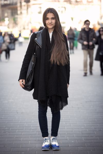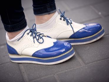 A viharos szélben és esőben kell egy csinos kabát, de nem árt egy olyan érdekes cipő sem, mint amilyet Karen hord: jó hír, hogy bár a kék-fehér Oxford-cipő tervezői darabnak tűnik, ön is beszerezheti az Asia Centerben!