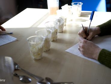 „Tejszínízű, kicsit nehéz, de összességében nem rossz. Gyerekkor, fagyizó, pluszhab.” „Elképesztő vajszag és íz, leginkább olyan, mint egy cukrozott vaj. Mivel elég kemény, tortán nem tudom elképzelni, köpült vaj kinézete van. Ez mondjuk azért jó, mert legalább nem olyan szájhoz tapadóan krémes.”