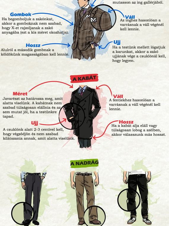 Az öltönyön, kabáton és cipőn kívül tanácsokat kapunk a nadrágvárásláshoz is, így könnyebben fel tudunk majd öltözni, ha követjük az instrukciókat!