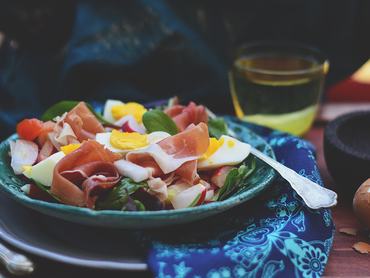 - Végül elhelyezzük a saláta tetején a tojás- és sonkaszeleteket.