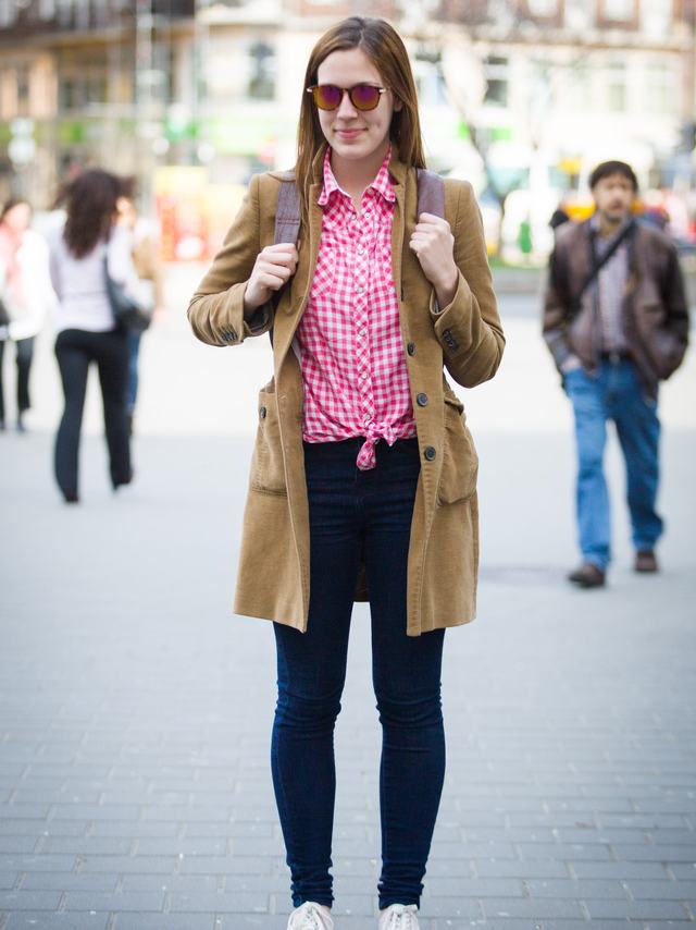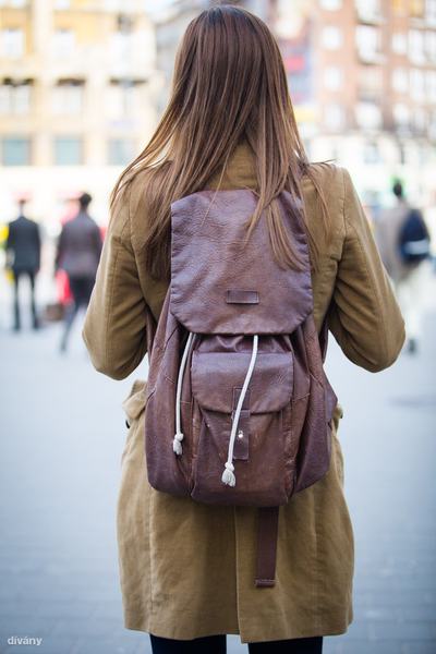 Ilyen hűvös időben jól jön a hosszított kabát és a zárt tornacipő. Regina szettjében mi legjobban a bőr hátizsákot szeretjük, mely amellett, hogy most épp nagyon divatos, praktikus is, és vagánnyá tesz bármilyen összeállítást.
