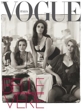 Érdekes, hogy a nők a képeken nincsenek igazi kapcsolatban egymással. Erre jó példa az olasz Vogue 2011-es júniusi kiadásának egy plus-size modellekről lőtt fehérneműs anyaga, melynek a címe (Sogno di Donna, azaz a nő álma) is sokat elárul a koncepcióról. A Steven Meisel által lőtt sorozatban négy ismert teltkarcsú modell, Robyn Lawley, Candice Huffine, Marquita Pring és Tara Lynn szomorkodnak egy szál semmiben, erotikus pózokban, az egyetlen valódi kapcsolatot kizárólag a kamerával tartják.